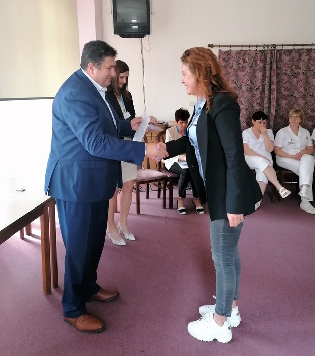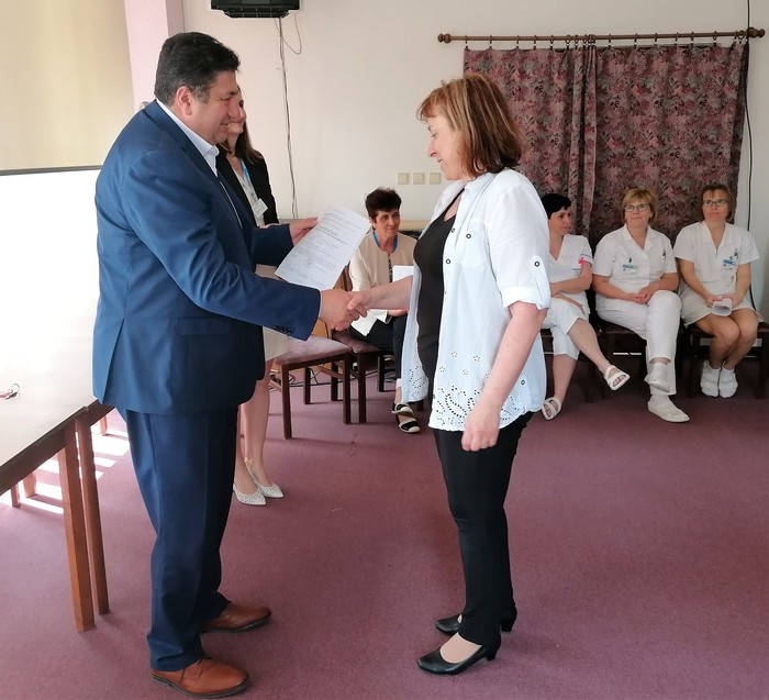 Akreditovaný kvalifikační kurz Ministerstva zdravotnictví ČR na přípravu osob pro práci v oblasti poskytování základních zdravotnických služeb v Nemocnici Pelhřimov úspěšně absolvovalo 24 účastníků. Osvědčení o absolvování vzdělávacího programu jim dnes osobně předal ředitel nemocnice Ing. Jan Mlčák, MBA a náměstkyně pro ošetřovatelskou péči Mgr. Vladimíra Macháčková. Slavnostního předání se zúčastnili i jednotliví lektoři.