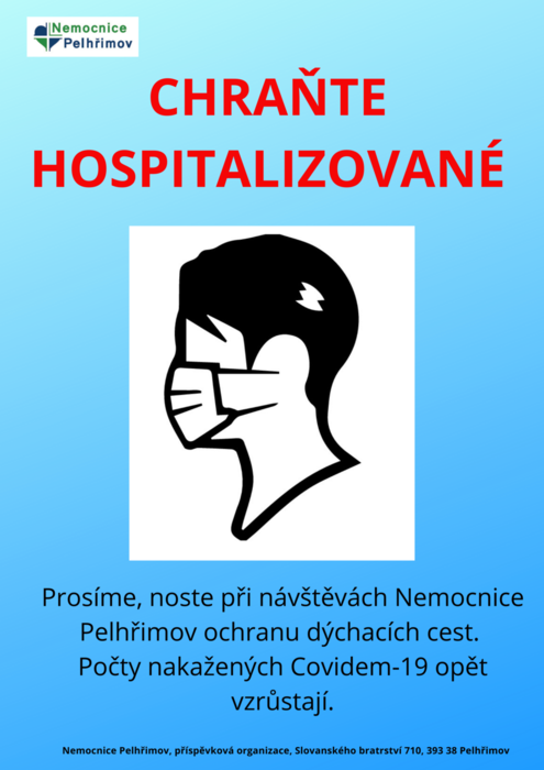 S platností od 1. 11. 2023 se doporučuje všem návštěvám Nemocnice Pelhřimov používat ochranu dýchacích cest (ústenka, respirátor).