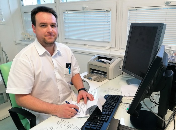Myšlenka vzniku edukačního centra vzešla od MUDr. Maroše Hrubiny, který nyní působí na klinice na Slovensku, dále od vrchní sestry ortopedického oddělení Mgr. Lady Razimové a fyzioterapeutky Jany Markvartové. Postupně jsem participoval na edukacích, až jsem na konci roku 2015 vystřídal ve vedení centra MUDr. Hrubinu. Smyslem našeho počínání je budoucí pacienty a operanty zcela otevřeně informovat a seznámit o průběhu předoperační přípravy, průběhu pobytu na oddělení po operaci a režimu po propuštění domů. To je jedna část edukace, ve které k pacientům promlouvám já a vrchní sestra. Druhá část se věnuje čistě rehabilitaci, kdy fyzioterapeutka pacienty seznamuje s přípravou domácího prostředí nebo povoleným a zakázaným pohybům. Pro posílení uchování informací pod nás každý pacient obdrží barevnou instruktážní rehabilitační brožurou s ilustračními fotografiemi i odkazem na internetové stránky nemocnice. Při nástupu na oddělení požadujeme, aby k opakování měli tuto brožuru s sebou.