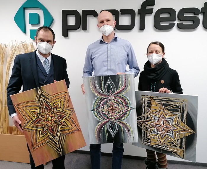 Nemocnice Pelhřimov získala darem od Nadačního fondu pro Pelhřimovsko čtyři obrazy. Abstraktní díla vytvořila maminka dvou dětí, umělkyně a samoživitelka paní Lena, která obrazy fondu nabídla primárně jako podporu lokálních dobročinných projektů. „Myslím, že je hezké někomu pomáhat. Ráda dám něco do placu. Někdo má peníze, obraz si koupí, udělá mu radost a ještě tím někomu pomůže,“ navrhla nadačnímu fondu mladá dobrodějka, která se před čtyřmi lety přestěhovala z Prahy do Pelhřimova. Své místo v rámci dobročinných projektů našly, z celkových šesti, dva obrazy. Zbylé čtyři fond věnoval nemocnici.
