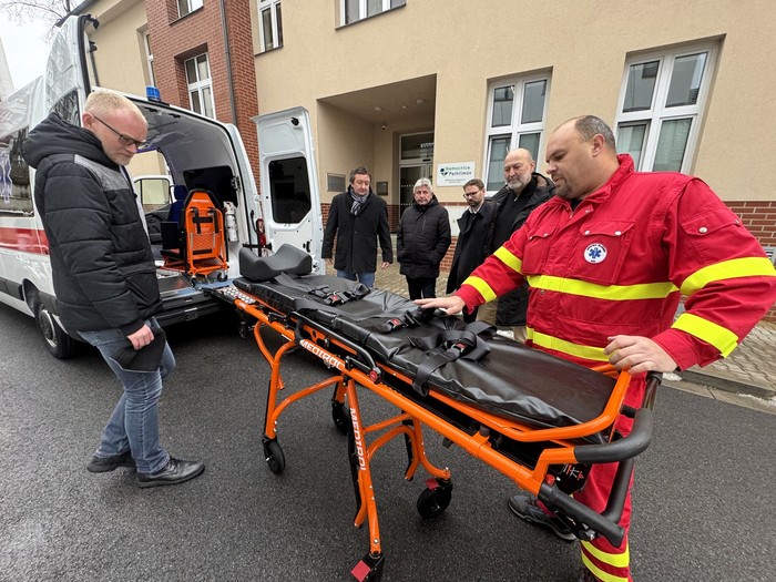 Sanitka splňuje všechny aktuální normy a vyhlášky, které jsou pro sanitní vozidla stanoveny a nabízí špičkový komfort při transportu pacientů. Mezi nejdůležitější výbavu patří zádržný systém pro malé děti, automatický externí defibrilátor a nájezdová rampa, která umožňuje snadné naložení imobilních pacientů na transportní sedačce s pětibodovým zádržným systémem. Veškerá transportní technika v sanitce je dimenzována na nosnost až 250 kg, což zajišťuje široké využití tohoto vozu. „Dlouhodobá spolupráce s městem Pelhřimov je pro naši nemocnici důležitá. Finanční podpora města nám umožňuje pravidelně obnovovat vozový park, což má přímý dopad na kvalitu a bezpečnost přepravy našich pacientů. Dnešní den je skvělým příkladem toho, jak efektivně může fungovat spolupráce mezi zdravotnickým zařízením a místní samosprávou,“ řekl Radim Hošek, ředitel Nemocnice Pelhřimov.