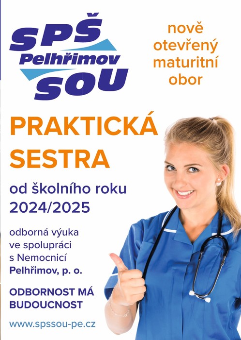 Střední průmyslová škola a Střední odborné učiliště Pelhřimov (SPŠ a SOU Pelhřimov) společně s Krajem Vysočina a Nemocnicí Pelhřimov, příspěvkovou organizací otevře 1. září 2024 nový studijní obor Praktická sestra. Žáci devátých tříd základních škol mohou do 20. února podávat až 3 přihlášky na 3 střední školy/obory vzdělání. V rámci 3 přihlášek si zvolí maturitní nebo učební obory, které seřadí dle priority (na 1. místo škola/obor, kam chci nejvíce).