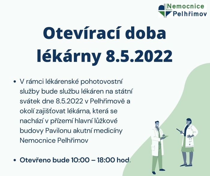 Otevírací doba lékárny na státní svátek 8.5.2022