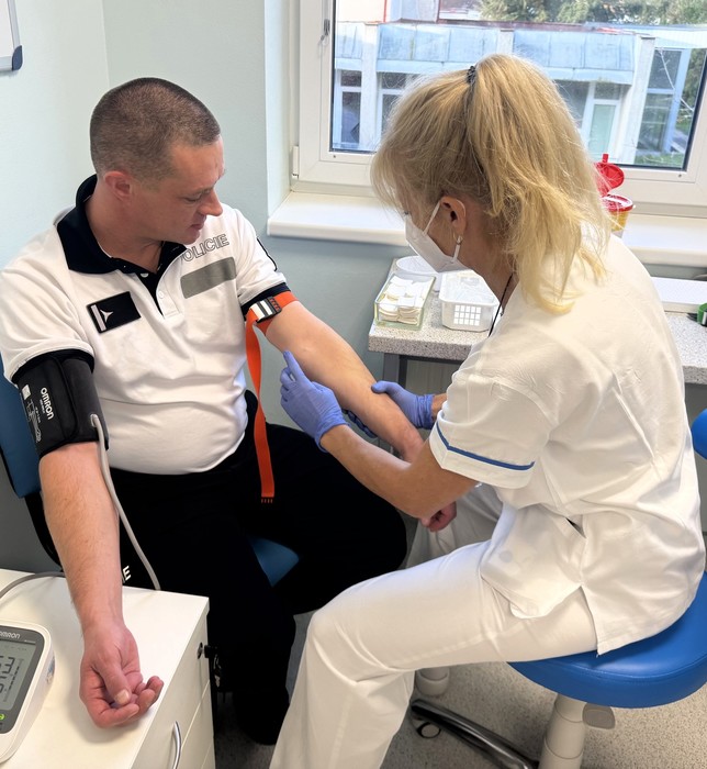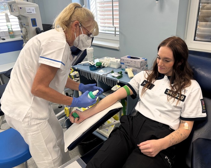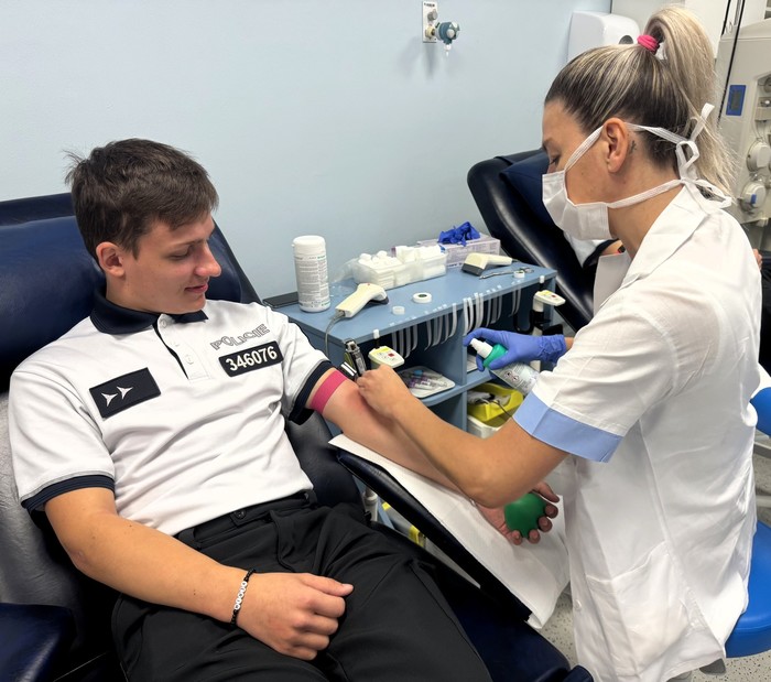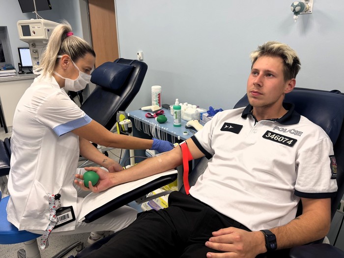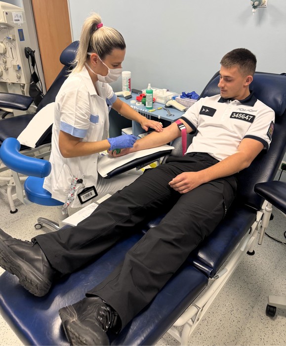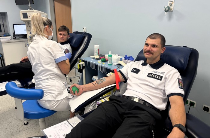 Transfuzní oddělení Nemocnice Pelhřimov přivítalo 29. října skupinu policistů ze Vzdělávacího zařízení v Jihlavě, kteří se rozhodli darovat krev, aby přispěli k zajištění potřebné zásoby pro nemocné pacienty. Ze třinácti policistů se jich osm stalo prvodárci. Za svůj krok obdrželi od Kraje Vysočina trička s poděkováním, která budou připomínat jejich důležitý počin. Kraj Vysočina chce kampaní apelovat na občany, aby se zapojili do pravidelného dárcovství a pomohli vytvořit rezervy krve, které jsou nutné pro zajištění bezpečí pacientů na operačních sálech a při dalších akutních zásazích. „Krev je pro nás cennou komoditou, protože umožňuje zachraňovat lidské životy například při těžkých operacích, akutních stavech nebo komplikovaných porodech,“ uvedla Michaela Harudová, lékařka OHT pelhřimovské nemocnice a dodala: „Dárci, jako jsou dnešní policisté, nám pomáhají zajistit krev pro ty, kdo ji potřebují.“