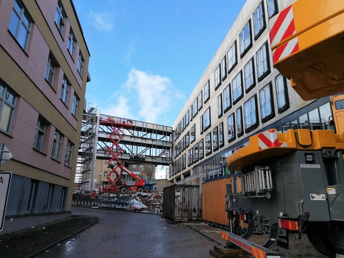 Modernizace areálu Nemocnice Pelhřimov zdárně postupuje. Aktuálně jsou na stavbě Pavilonu péče pro rodinu prováděny betonáže podlah ve 4. nadzemním podlaží. Ostatní patra jsou již vybetonována. Dále probíhají rozvody kabeláží elektro ve všech prostorech, rozvody chlazení, vzduchotechniky a ústředního topení. Hrubé rozvody by měly být dokončeny v první polovině měsíce března. „Podařilo se nám propojit všechny objekty nadzemními spojovacími krčky s tím, že krčky do ODN a jídelního prostoru jsou z celé části zaskleny a zastřešeny. Na nejdelším spojovacím krčku do objektu Pavilonu akutní medicíny právě provádíme zasklení a následně dokončíme fasády a montáž střešního pláště. Omezení plánujeme na zhruba tři měsíce,“ informoval stavbyvedoucí Radim Seifer. Po montáži zasklení bude na nadzemním krčku provedena montáž okrasných lamel, které budou mít funkci částečného zastínění. „Nemocnice již nyní zpracovává projekt na přístrojové a interiérové vybavení pavilonu,“ sdělil náměstek HTS pelhřimovské nemocnice Petr Adam.