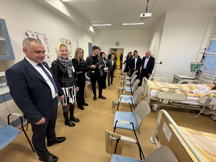 Delegace byla v nemocnici přivítána ředitelem Radimem Hoškem a náměstkyní pro ošetřovatelskou péči Vladimírou Macháčkovou. Po uvítání se hosté přesunuli do zasedací místnosti, kde ředitel představil v rámci prezentace nemocnice organizaci péče, poukázal na využití moderní zdravotnické techniky a během diskuse odpovídal na řadu dotazů. Hlavní část programu zahrnovala prohlídku Pavilonu péče o rodinu a oddělení, která tam mají zázemí - gynekologicko-porodnického oddělení, dětského oddělení a neurologického oddělení. Hosté nahlédli také do ambulance praktického lékaře pro děti a dorost a vyzdvihli moderní vybavení jednotlivých oddělení a komfort pro pacienty. Během prohlídky navštívili i nově zřízené odborné učebny oboru Praktická sestra v bývalém dětském pavilonu.