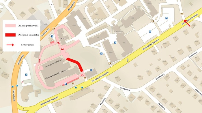 V souvislosti se stavebními pracemi na novém pavilonu dojde od úterý 4. 1. 2022 k uzavření úseku silnice vedoucí souběžně s hlavní lůžkovou budovou Nemocnice Pelhřimov až po vchod k ortopedickým a chirurgickým ambulancím. Žádáme všechny občany, aby v době dočasného uzavření využívali k příjezdu do areálu, pokud tedy nejedou na PCR či antigenní test do odběrového stanu, primárně horní vjezd. Uzavírka je naplánována na dva až tři měsíce. O případných změnách bude nemocnice včas informovat.