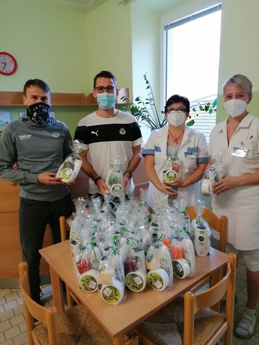 Fotbalový klub Pelhřimov podpořil naše zdravotníky pečující o pacienty na oddělení dlouhodobě nemocných. Věnoval jim 31 balíčků, které obsahovaly například sprchové gely či vyživující krémy. Děkujeme. Všech darů si vážíme.