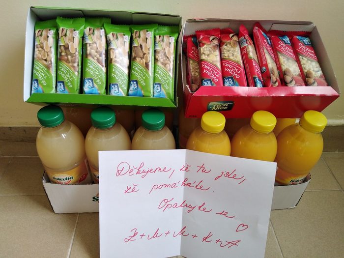 Děkujeme za solidaritu, kterou nám vyjadřujete. Společnost VHST s.r.o. podpořila naše zdravotníky dodáním balených vod, džusy, kávou a čaji. Ty budou stejně jako müsli tyčinky a džusy od manželů Kupcových z Pelhřimova dodány např. na oddělení tzv. červené covidové zóny, dále na anesteziologicko-resuscitační oddělení a do očkovacího centra v KD Máj.