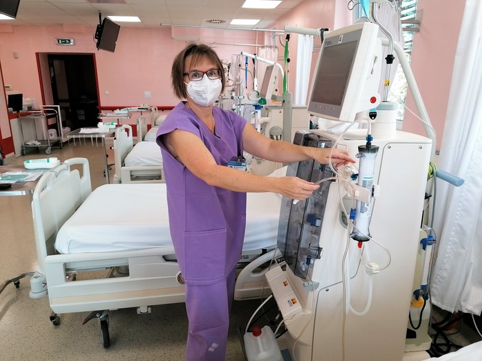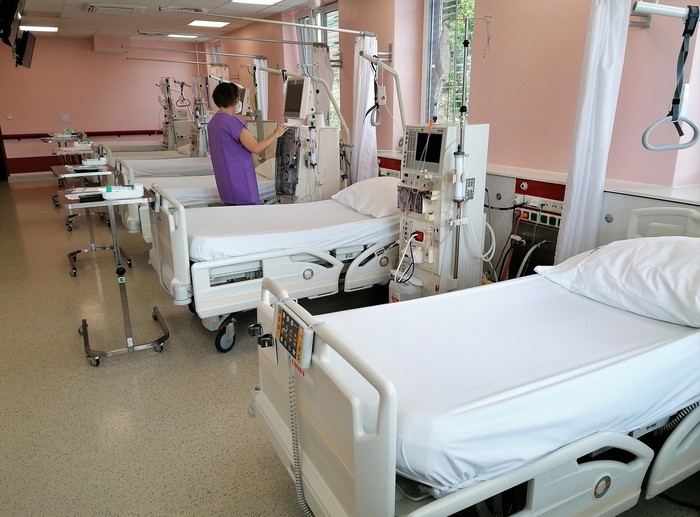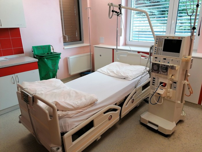 Do komplexu interního oddělení patří i hemodialyzační středisko. Nachází se v samostatné budově v horní části areálu spolu s oddělením hematologie a transfuziologie. Dialyzační středisko je umístěno v 1. podzemním podlaží této budovy. Má k dispozici celkem 10 lůžek, které jsou rozmístěny na dialyzačním sále (8 lůžek) a dialyzačních boxech (box 1 a box 2). Součástí dialyzačního střediska je nefrologická a predialyzační ambulance.